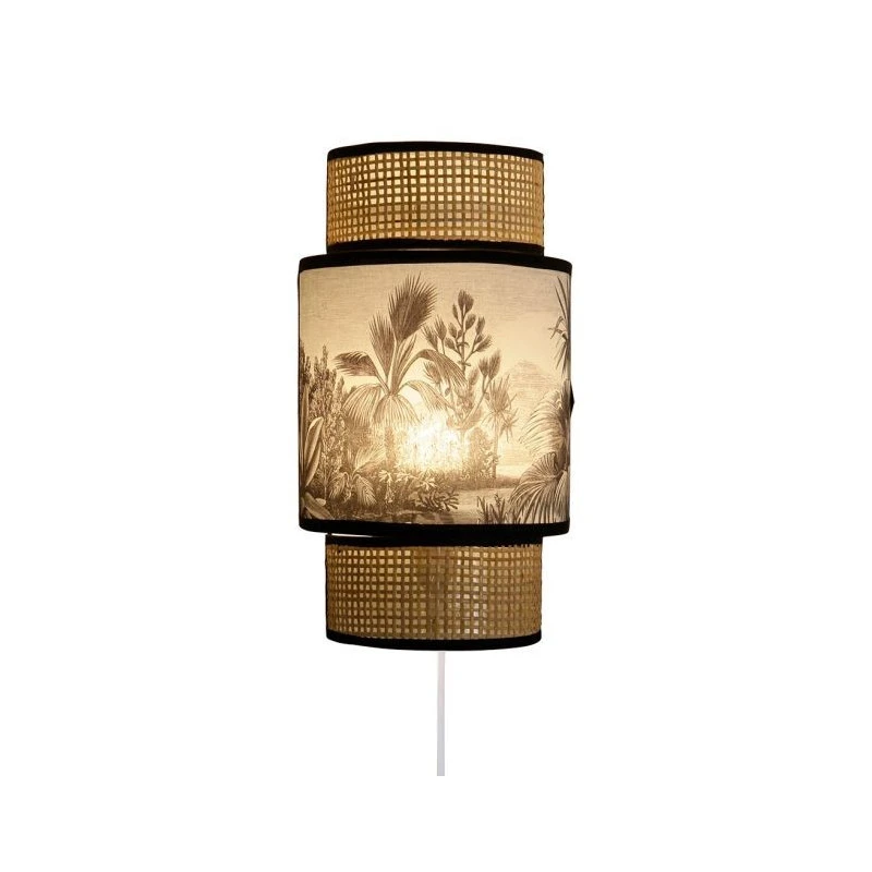Cette applique murale incurvée diffusera une lumière douce dans votre pièce grâce à son aspect tissu et rotin.