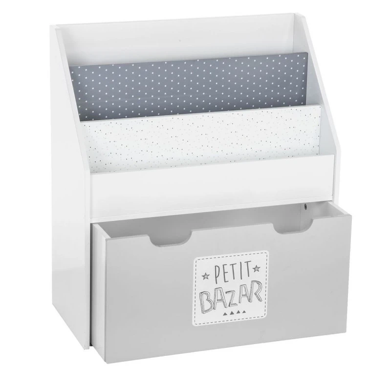 Ingénieuse, cette bibliothèque grise et blanche pour enfant avec bac à roulettes apportera le rangement nécessaire pour que votre petit se sente bien dans sa chambre. Permettant d’accueillir de nombreux livres, vous pourrez également y ranger d’autres jouets ou peluches grâce au coffre à jouets sur roulettes intégré.