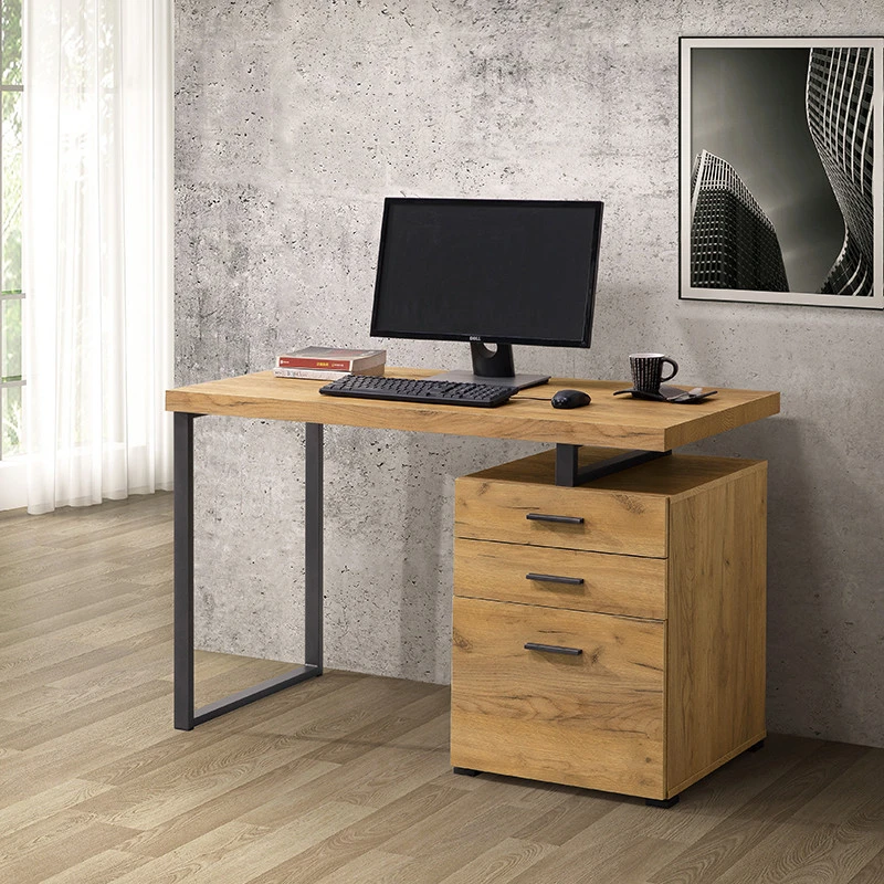 Le bureau 3 tiroirs avec pied en métal Elton allie style et fonctionnalité.