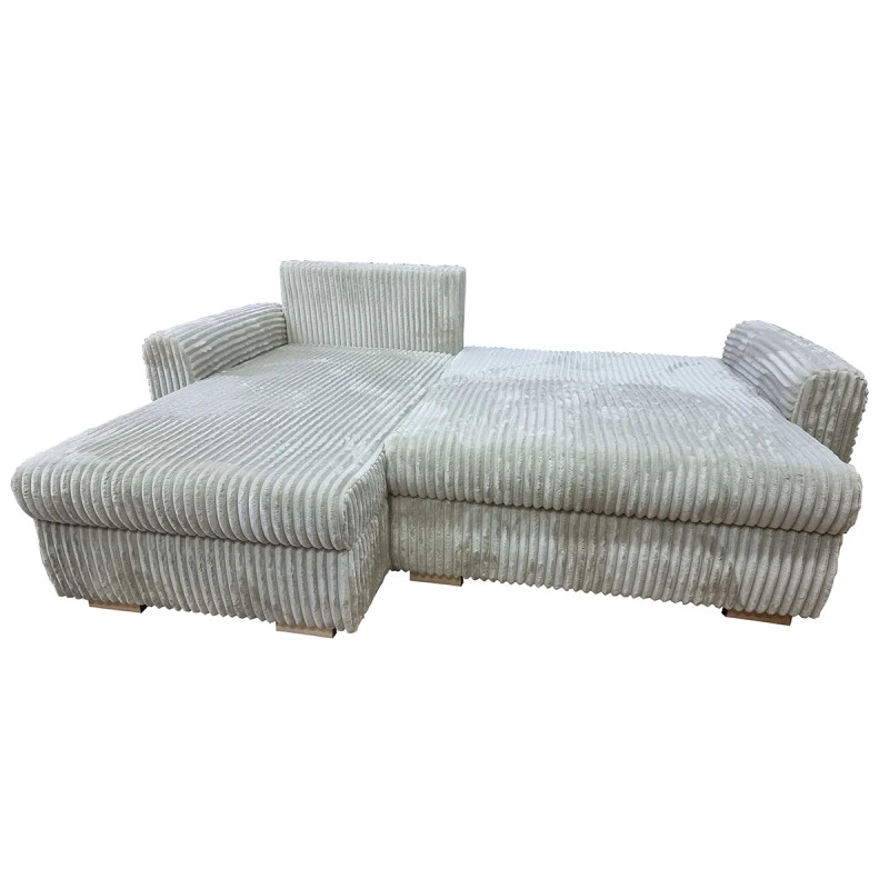 Apportez une touche de chaleur et d’élégance à votre salon avec le canapé d’angle convertible Zora, un modèle aussi pratique que stylé. Revêtu d’un somptueux velours côtelé beige, ce canapé invite à la détente grâce à sa texture douce.