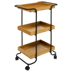 Pratique et esthétique, cette desserte 3 niveaux bambou avec structure en métal apportera du rangement à votre cuisine ou votre salle de bain.
