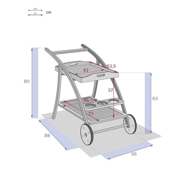 Idéale pour transporter vos plats, bouteilles et autres ustensiles facilement grâce à ses 2 roues.