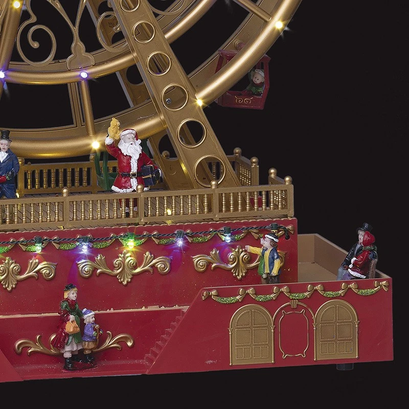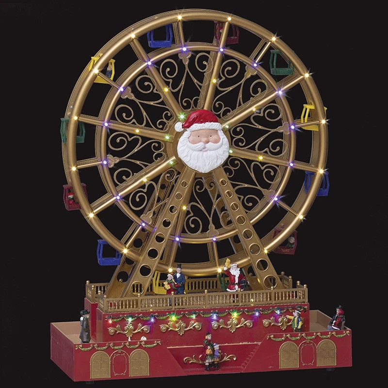 Grande roue père Noël animée, lumineuse et musicale qui amènera l’esprit de Noël dans votre foyer tout en restant discret et vous plongera dans l’univers de la fête foraine.
