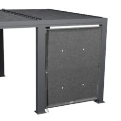 La structure de cette pergola est en acier traité époxy antirouille et la toile 250 g/m² dispose d’un traitement anti-UV pour une haute résistance dans le temps.