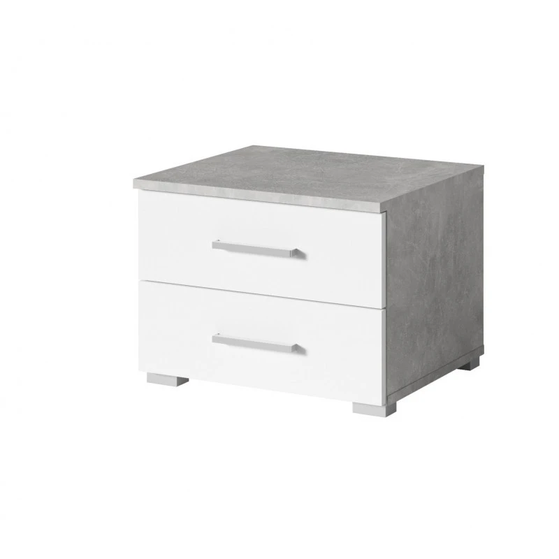 Table de nuit blanche et grise de la collection Soma. Cette table de nuit est composĂ©e de deux tiroirs pour plus de rangement. Pratique et sobre, elle s’intĂ©grera dans n’importe quelle chambre.Â
