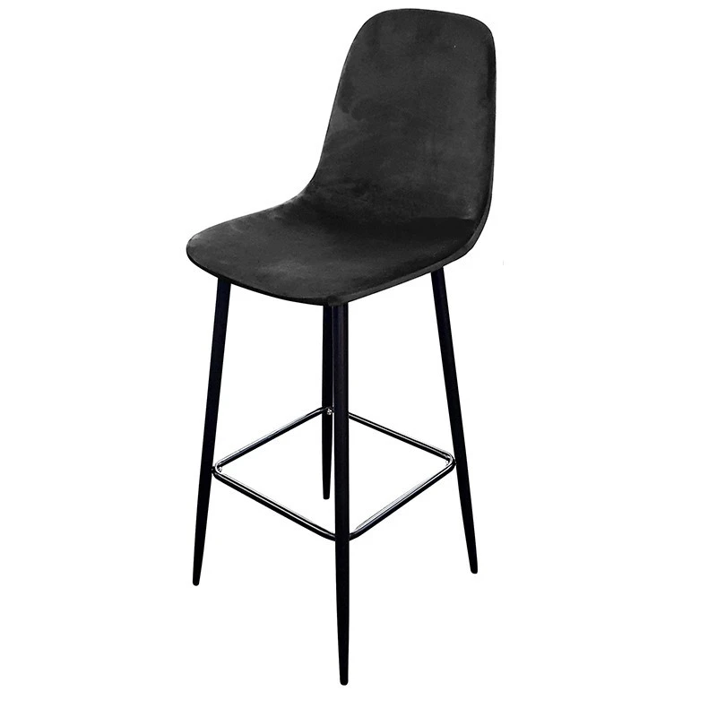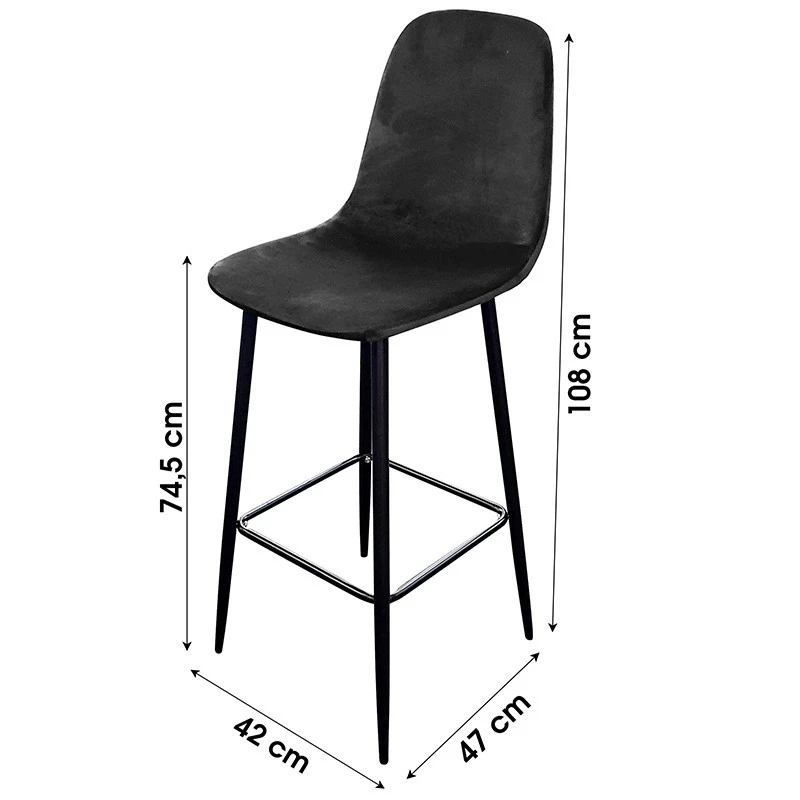 Tabouret de bar avec pieds métal noir et assise en velours noir.