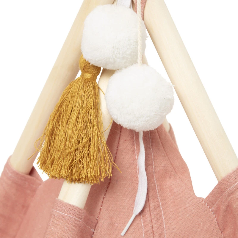 Décoré de pompons, ce tipi est très décoratif et pourra être placer dans une chambre ou un séjour.
