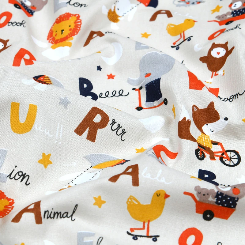 Faites rimer apprentissage et créativité avec ce tissu cretonne Alphabet aux lettres et animaux ludiques et multicolores !