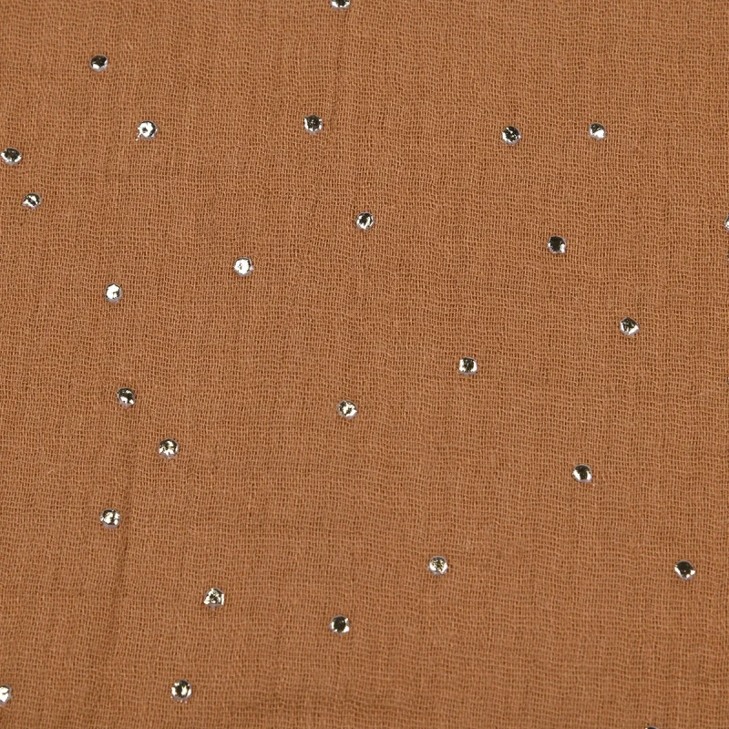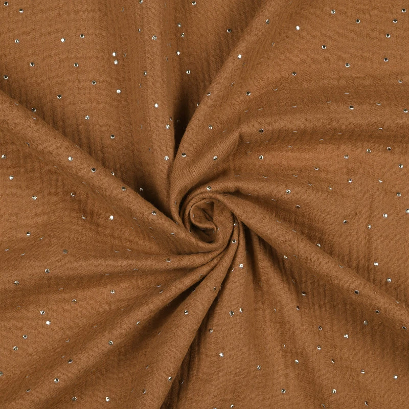 Offrez à vos créations couture une touche de douceur et de légèreté avec notre tissu double gaze camel avec effet pailleté, idéal pour des vêtements aériens, des accessoires délicats ou du linge de maison tendance.