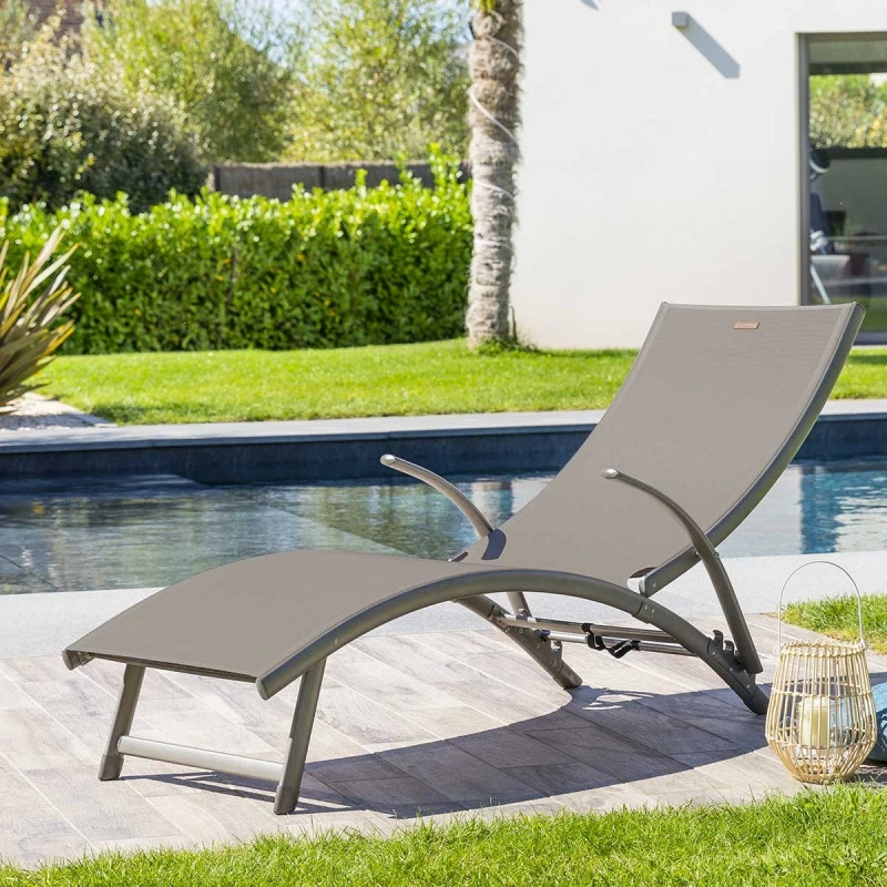 Profitez du soleil grâce au transat pliable multi-positions Samba coloris noisette/graphite de la marque Hespéride.