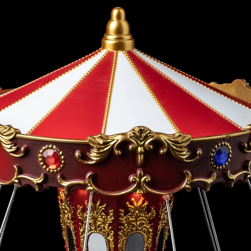 Village de noël animé, lumineux et musical carrousel chaises qui vous plongera dans l’univers de la fête foraine. Avec ses chaises volantes qui se mettront en mouvement et le manège en musique et qui s’illumine, il vous séduira à coup sûr. Lumière LED. Pour usage intérieur exclusivement. Lampes non remplaçables. A branché sur secteur. N’hésitez pas à l’associer à d’autres produits pour créer une décoration unique qui vous ressemble