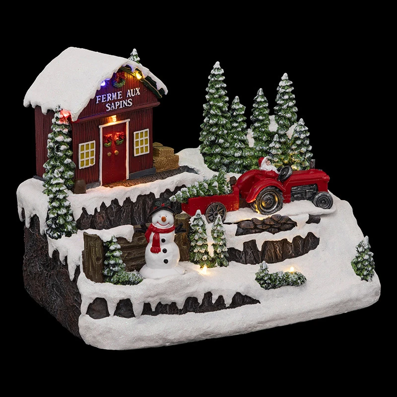 Plongez dans les préparatifs de Noël avec ce village « Ferme aux sapins » lumineux et musical.